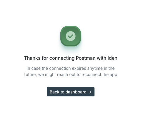 Iden checks that the connection works. This usually takes less than a minute. You will see a "Verifying connection" spinner while it runs.