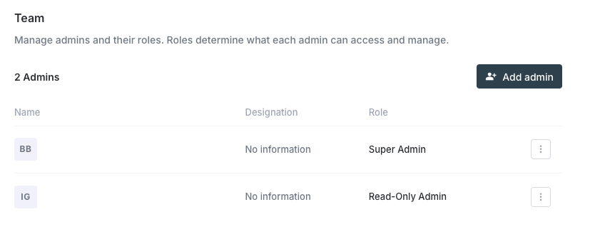 | Read-Only Admin | View everything in the dashboard but cannot make any changes |
